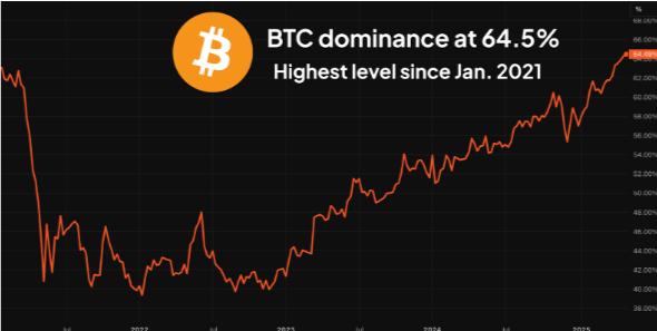 Several factors contribute to a high BTC dominance, especially during certain market phases: