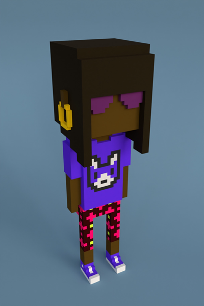 Meebits are a collection of 20,000 algorithmically generated 3D characters that live on the Ethereum blockchain. They are rendered in voxels (or pixels with volume) similar to characters from popular games like Minecraft or Roblox. These NFT characters will be usable as avatars in the metaverse, games and VR.