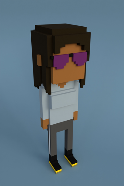 Meebits are a collection of 20,000 algorithmically generated 3D characters that live on the Ethereum blockchain. They are rendered in voxels (or pixels with volume) similar to characters from popular games like Minecraft or Roblox. These NFT characters will be usable as avatars in the metaverse, games and VR.